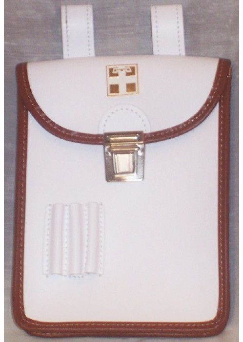 Porta manette chiuso in pelle bianca bordato di marrone P.L. Reg. Piem.
