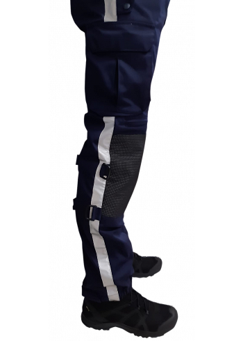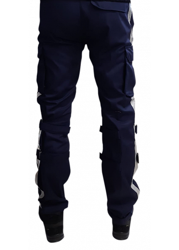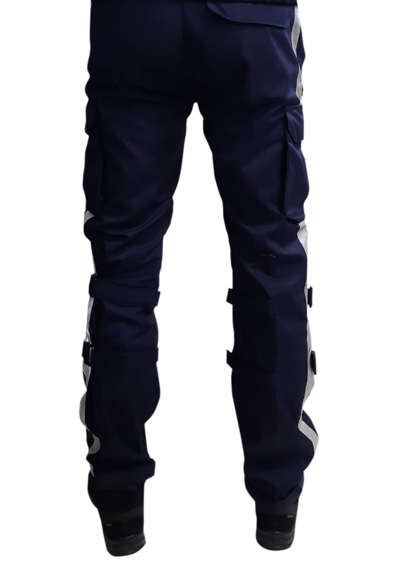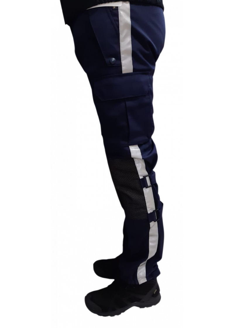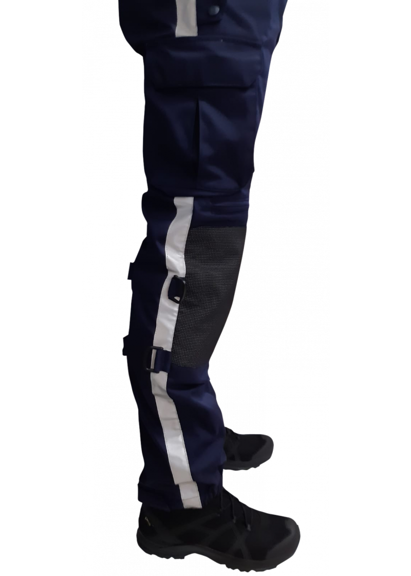 pantalone operativo Reg. Liguria, chiusura con bottone a pressione, apertura tramite zip,elastico posteriore,tasche sul davanti coperte da pattina fermata da bottone a pressione,tasche laterali con soffietto ai lati al centro coperte da pattina fermata da velcro,tasca per inserimento protezione paracolpi alle ginocchia chiuse da zip,tessuto di rinforzo filo rinfrangente applicato altezza ginocchio,alamari regolabili tramite velcro per una migliore aderenza delle protezioni,tasca dietro chiusa da zip coperta da pattina fermata da velcro,soffietto al fondogamba chiuso tramite zip,elastico al fondo ed alamaro di regolazione con velcro,bande retroriflettenti applicate sui lati esterni delle gambe.