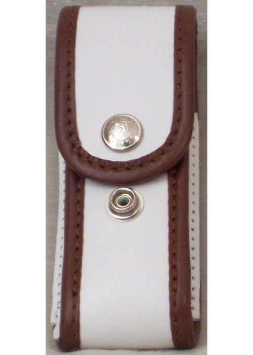 Porta caricatore in pelle bianca bordato di marrone Polizia Locale Reg. Piem.