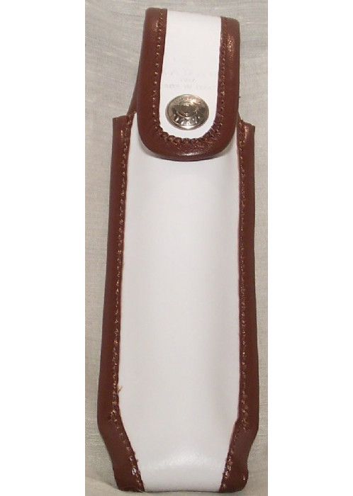 Porta pila in pelle bianca bordato di marrone Polizia Locale Reg. Piemonte