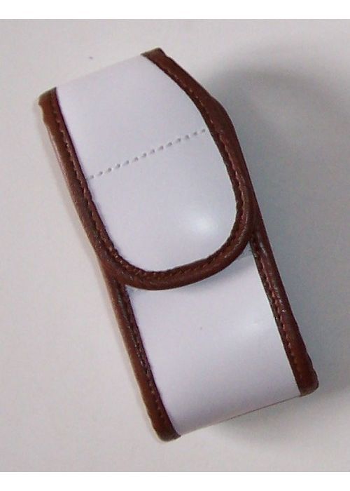 Porta telofono in pelle bianca bordato di marrone Polizia Locale Reg. Piemonte