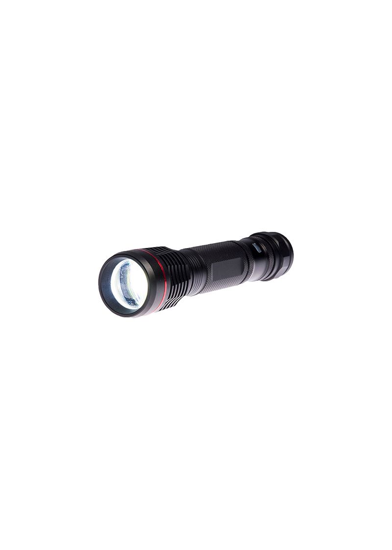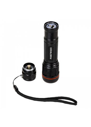 Questa torcia ricaricabile è compatta e leggera. La distanza del raggio e la messa a fuoco sono regolabili con un sistema a torsione. Questa torcia può anche essere utilizzata come un caricabatterie USB di backup con una potenza sufficiente per una ricarica completa del telefono.